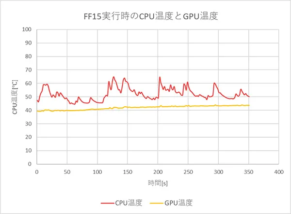 続いて、ゲーム時のCPUおよびGPU温度を計測しました。