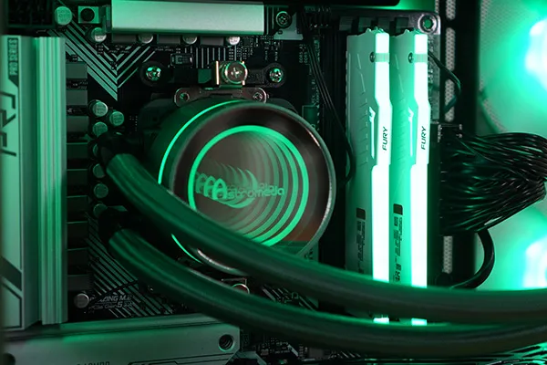 32GBのDDRメモリを搭載しています。標準ではLED非対応ですが、カスタマイズでLED対応のものに変更することができます。今回はFURY製のメモリが搭載されていました。