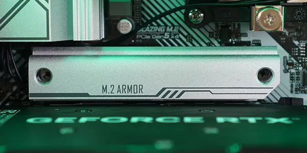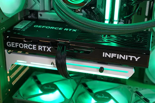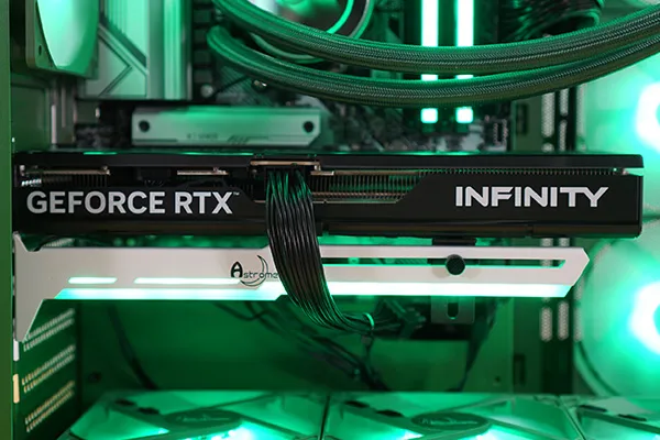 オプションでRGBライティング対応のGPUステーを選択することもできます。大型のGPUではステーによりたわみを抑えることができ、見た目と安定性を両立できます。