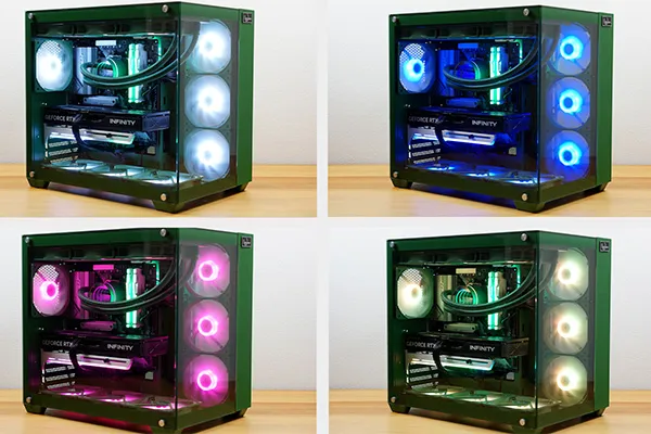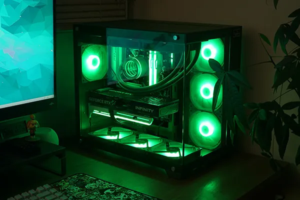 ピラーレスケースに加え、カラー統一されたパーツやRGBライティングを採用しています。