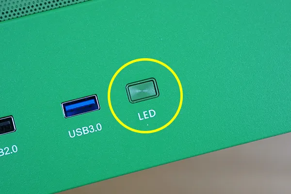 LED点灯時にはネオングリーンのような発色となり、サイバーパンク風の雰囲気を楽しめます。