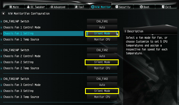 なお、UEFI画面からCPUファンとケースファンをサイレントモードにしても動作音には変わりなかったので、「Fan Control」というフリーツールからケースファンのみ、回転数を最大まで下げた時の動作音も計測してみました。※なお、メーカー提供以外の方法で、BIOSアップデート等したモデルは、保証適用外となってしまうのでご注意ください。
