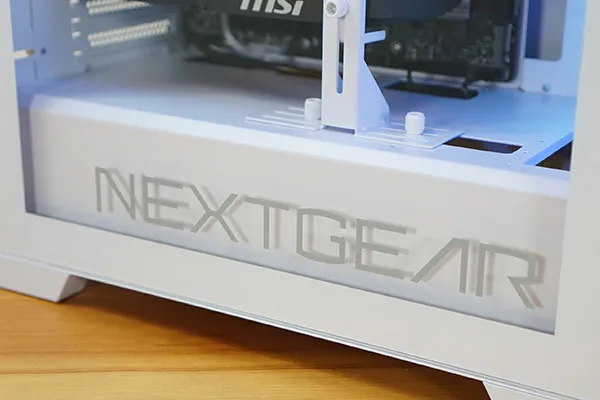 パネル下には「NEXTGEAR」の文字が印字されています。