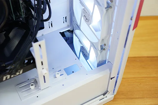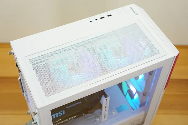 トップのRGBファンです。カスタマイズで水冷クーラーを選択した場合、ラジエーターはここに設置されます。