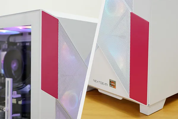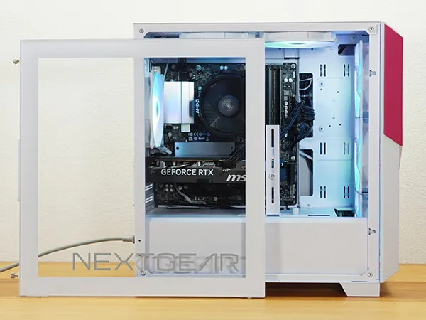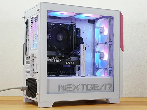 NEXTGEAR JGシリーズでは、全モデル標準でガラスサイドパネルとRGBファンが搭載されています。