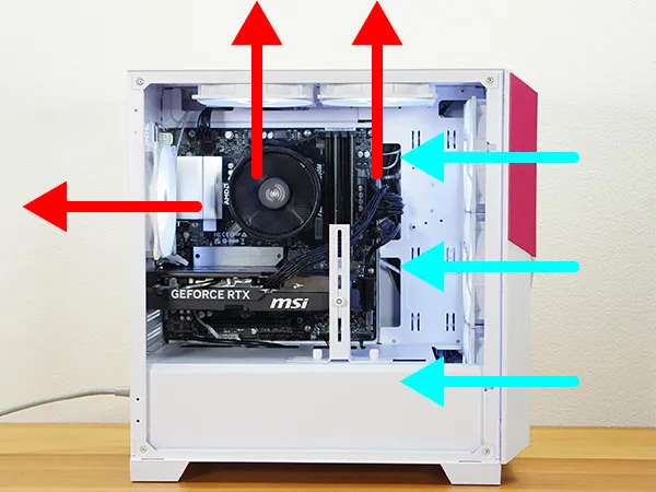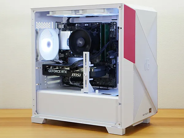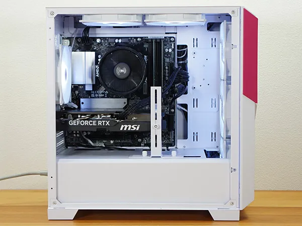 ケースのエアフロー効率が高いため、温度が高くなり過ぎず、長時間のゲームも安心です。