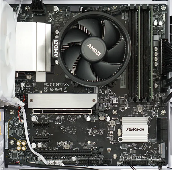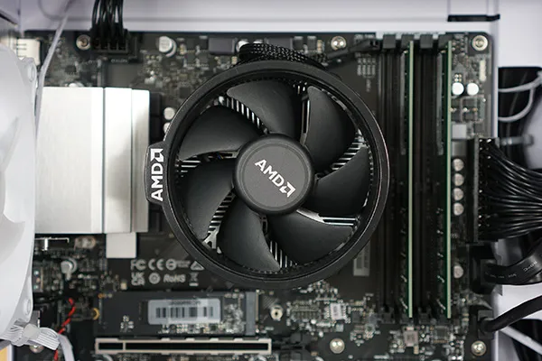 Ryzen 7 5700Xを搭載する「NEXTGEAR JG-A7G6T」 では、AMD純正のリテールクーラーが搭載されていました。空冷でも十分冷えるCPUなので、問題ないでしょう。