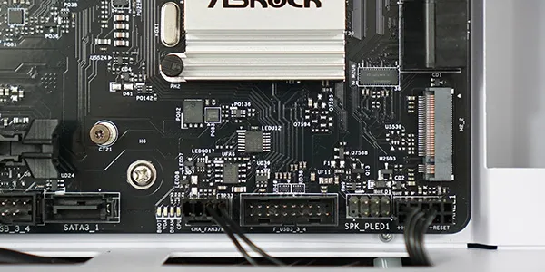 また、右側面ケース内部に2.5インチSSDを2台設置できるスペースがあるので、こちらに後で増設も可能です。なお、搭載されるマザーボードにもよりますが、空きのM.2 スロットがある場合はこちらにも増設可能です。