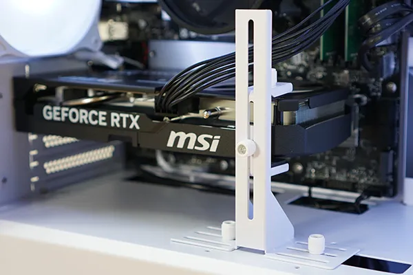 2連ファンのサイズでも、カードを支えるサポートバーが標準で搭載されています。自重による歪みだけでなく、発送時のズレ・脱落まで防止してくれるので安心です。