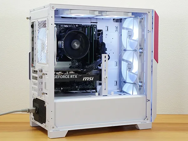 内部の見えるガラスパネルおよびRGBファンは標準搭載で、筐体カラーはブラックとホワイトの2色から選択することができます。