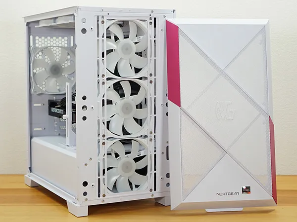 NEXTGEAR JGシリーズは、フロントパネルとトップパネルが通気性の良いメッシュ仕様になっており、さらに最大6つのファンで内部を効率よく冷却することにより、ミニタワーでも優れた冷却性能を実現しています。