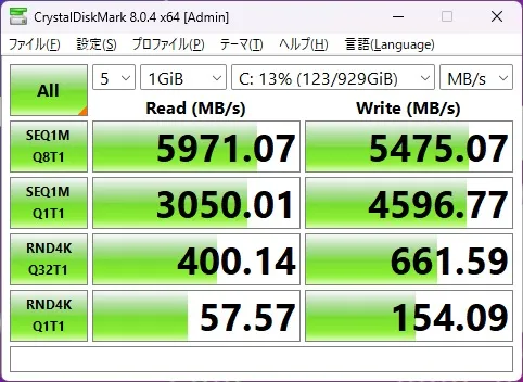 ストレージは、標準で1TBのPCIe Gen4 SSDを搭載しており、アクセス速度は速いです。