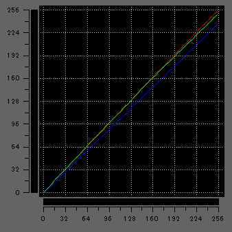 ガンマ補正曲線を確認すると、明部になるにつれて、青色が強くに発色していることが分かりますが、そこまで気にはならない程度だと思います。