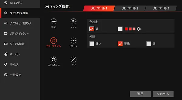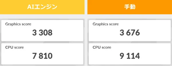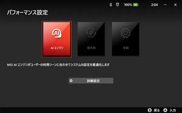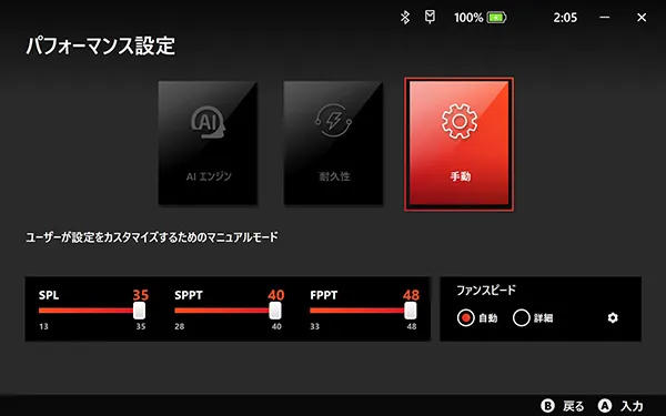 基本的には「AIエンジン」モードで使用し、パフォーマンスが欲しいときは「手動」モードに切り替えるのが製品の寿命的にもいいと思います。