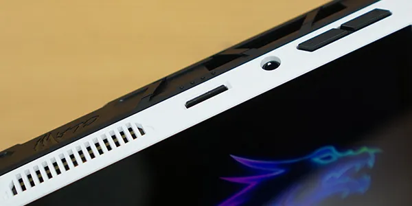 インターフェースは上部に集中しています。オーディオコンボジャック、microSDカードリーダーに、映像出力、PowerDelivery対応のUSB4 Type-Cが2ポート備わっています。周辺機器を接続したい時はUSB-Cハブを使用することで拡張できます。