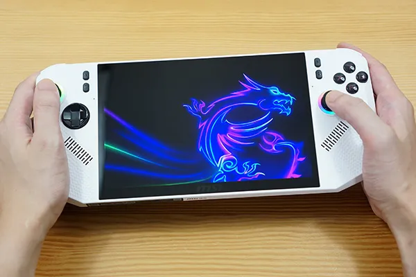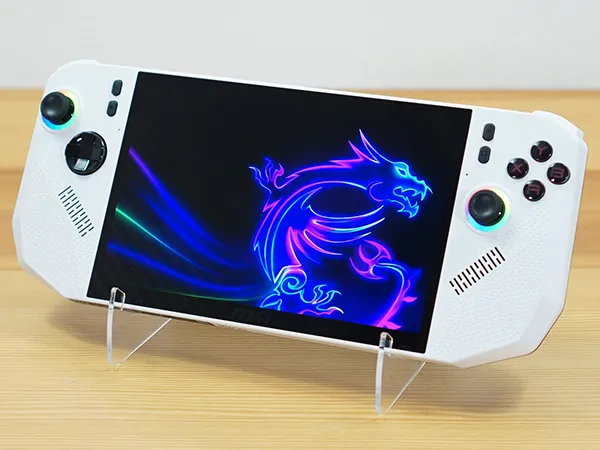 MSIのポータブルゲーミングPC、Clawシリーズでは、これまでブラックやグレーといった暗めのカラーでしたが、最新のClaw A8 BZ2EMはホワイトのカラーとなりました。爽やかな見た目で皮脂も目立ちにくく、遊び心ある見た目が特徴です。なお、海外ではネオグリーンのモデルもあります。