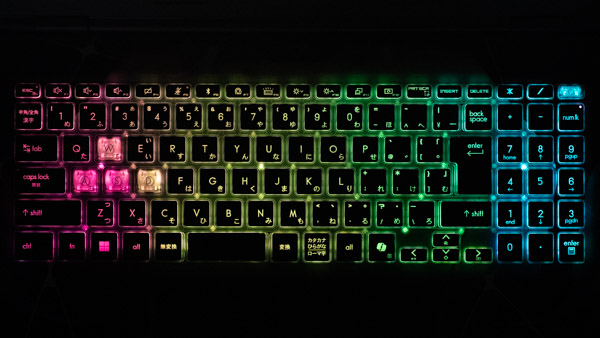 中が見えるようになっているスケルトンデザインが特徴的なゲーミングノートPCです。