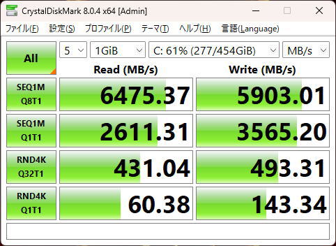 CPUは、Ryzen 9 270です。そこまで高いスコアではありませんでしたが、ゲーミングノートとして最低限の性能はあると思います。