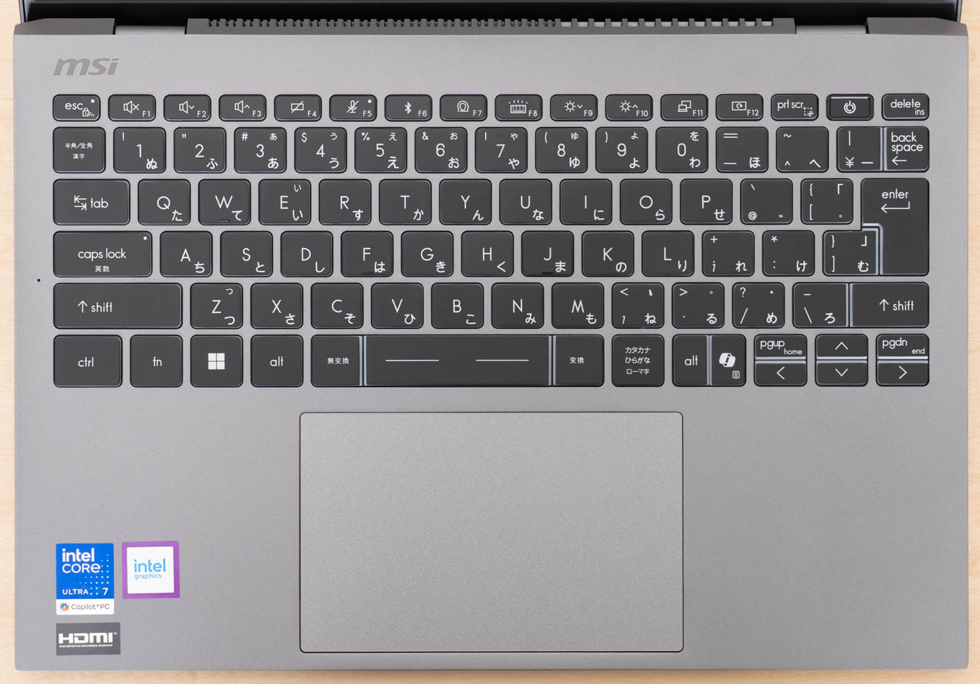 14型のPrestige 14 Flip AI+と比較すると、キーの縦幅が狭くなっているので、窮屈さを感じます。