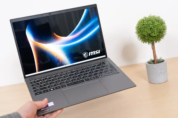 Prestige 13 AI+ A3Mは、900gを切る、非常に軽いノートPCです。
