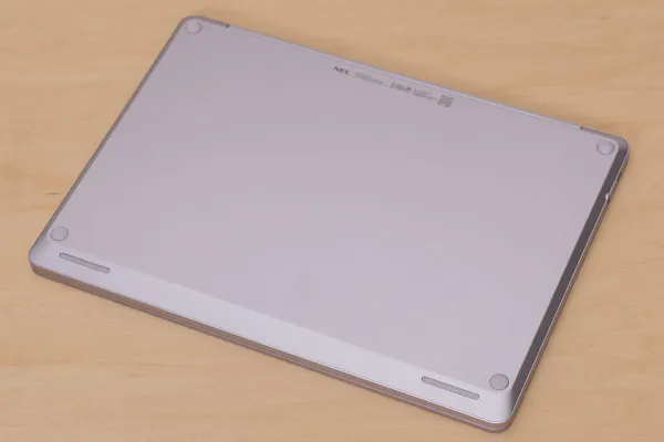LAVIE SOLを実際に触って、もっともいいと思った点は、デザインです。ネジや吸気口が見えない外観で、エッジも丸みを帯びており、剛性の高そうなアルミのボディです。
