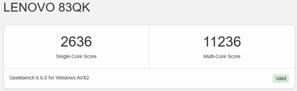 どちらかと言うと、旧世代の「U」シリーズのCore Ultra 7 255Uに近いスコアです。一般ノート向けCPUとしては標準的な性能でしょう。