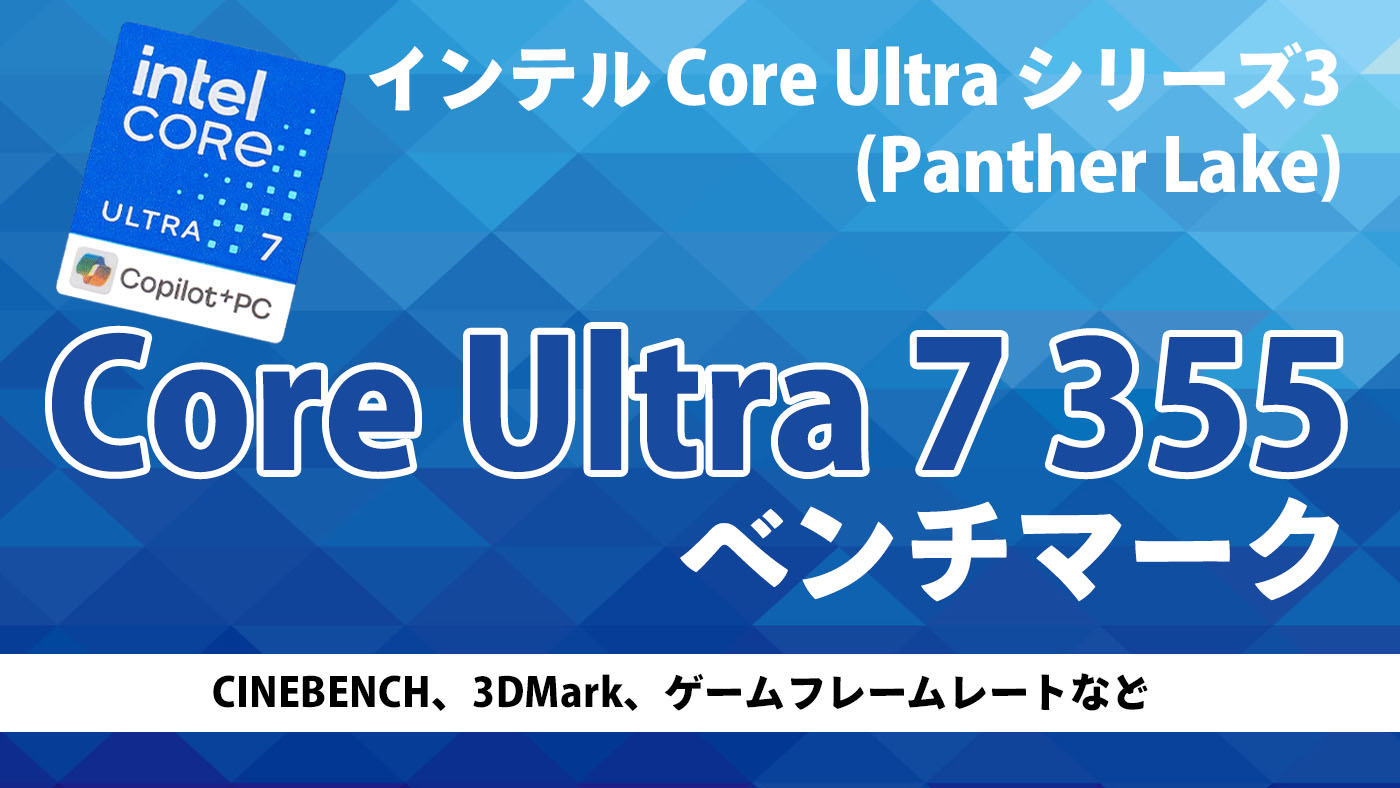 ここでは、インテル Core Ultra シリーズ3の「Core Ultra 7 355」の各種ベンチマークスコアを掲載します。