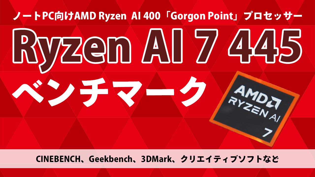 ここでは、開発コード名:Gorgon Pointこと、Ryzen AI 400シリーズの1つ「Ryzen AI 7 445」の各種ベンチマークスコアを掲載します。
