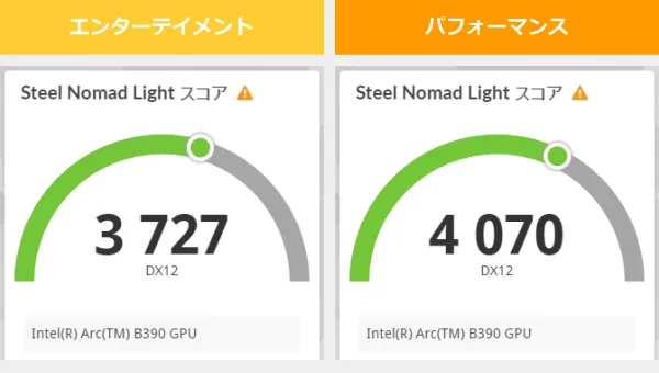 ※どちらも最もパフォーマンスが出るモード