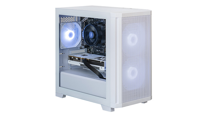 筐体はホワイトカラーのガラスパネルを採用し、グラフィックボードも白で統一された、美しい外観も魅力です。