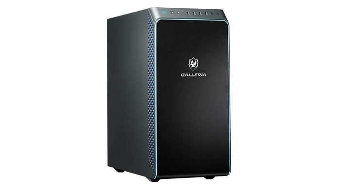 筐体は旧デザインのミドルタワーですが、GALLERIAブランドらしい重厚感のあるデザインで、ゲートをイメージしたフロントパネルなど外観のかっこよさも魅力です。