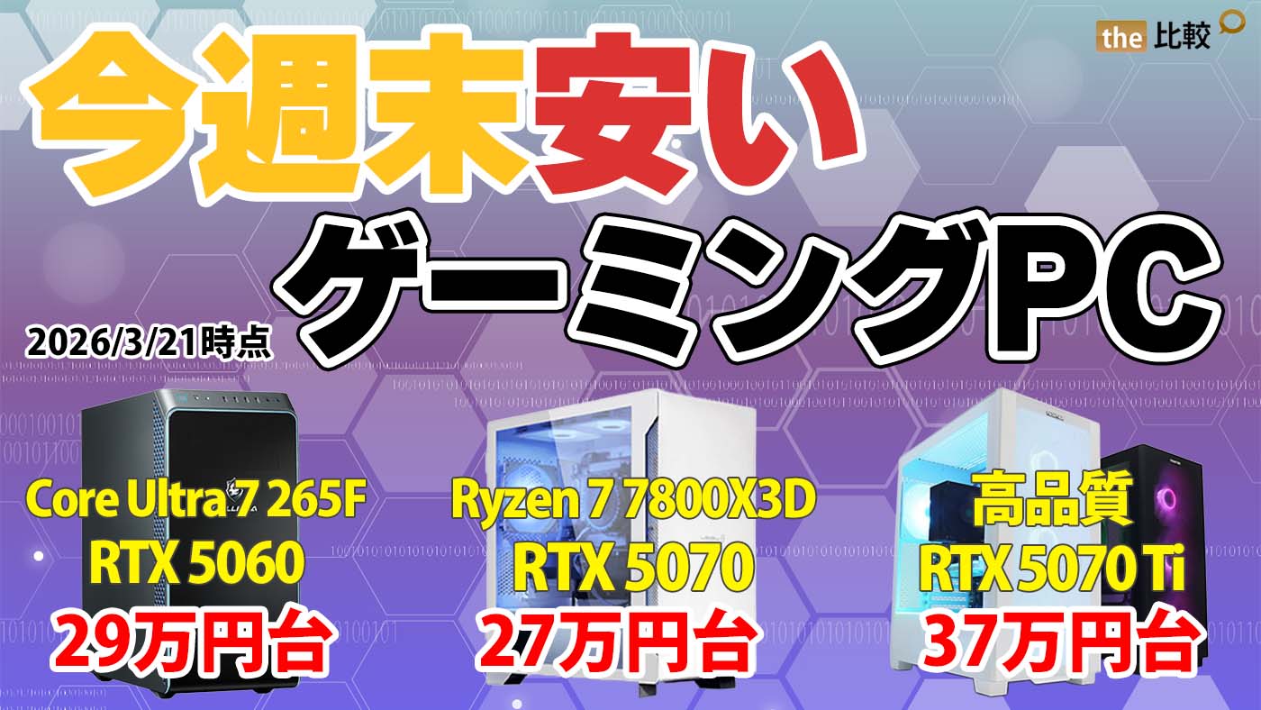 今週末は、RTX 5070搭載モデルが大幅値下げされており、ゲーミングPCの狙い目タイミングです。