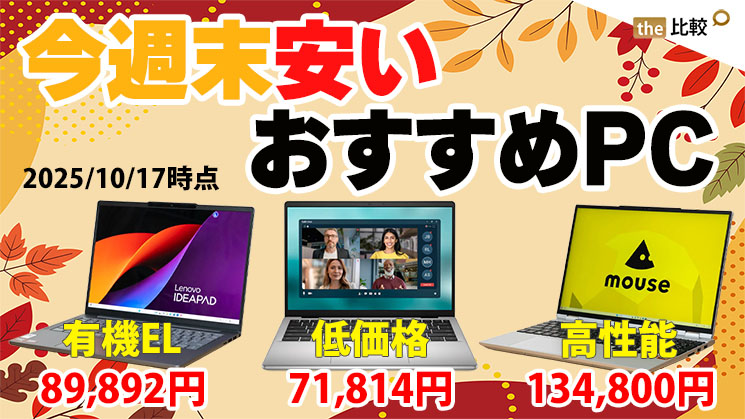 2025年10月17日の週末に開催中のセールの中から、おすすめのノートPCを紹介します。