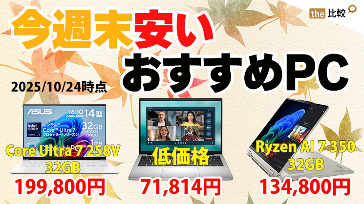 2025年10月24日の週末に開催中のセールの中から、おすすめのノートPCを紹介します。