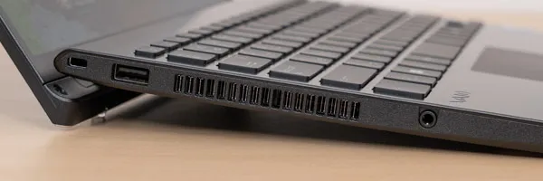 キーボードが比較的打ちやすいと書きましたが、そのヒミツは、ボディの奥側が持ち上がるリフトアップヒンジにあります。傾斜がつくことにより、タイピングをしていても疲れにくいです。