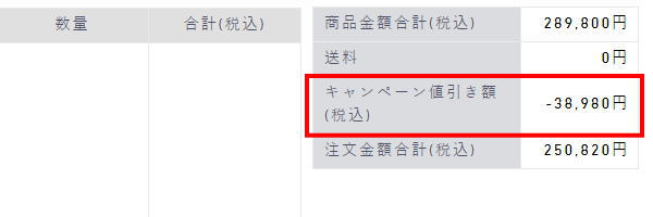 現在、メーカー側で10%OFFキャンペーンを実施しているので、10%OFFに加えて10,000円が割り引かれていると思います。