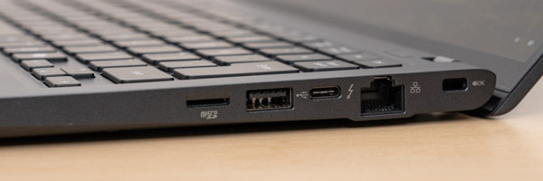 ポートの種類も豊富です。特にLANポートが搭載されている点が特徴で、無線LANを禁止しているオフィスなどでも使いやすいです。また、USB-Cが左右の両方に付いているのも嬉しいです。どちらのUSB-Cポートも充電対応です。
