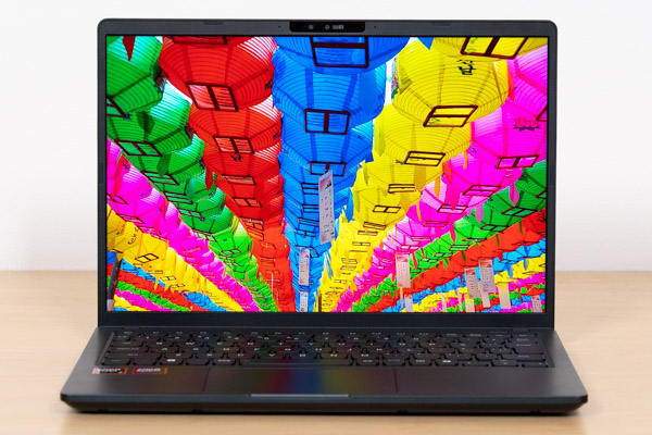 ディスプレイの色域は、当サイトの計測で、sRGBカバー率 97%となっています。広めの色域なので、画像などが綺麗に表示できます。撮影した写真を綺麗に表示することができますし、動画も綺麗な映像で鑑賞することができます。